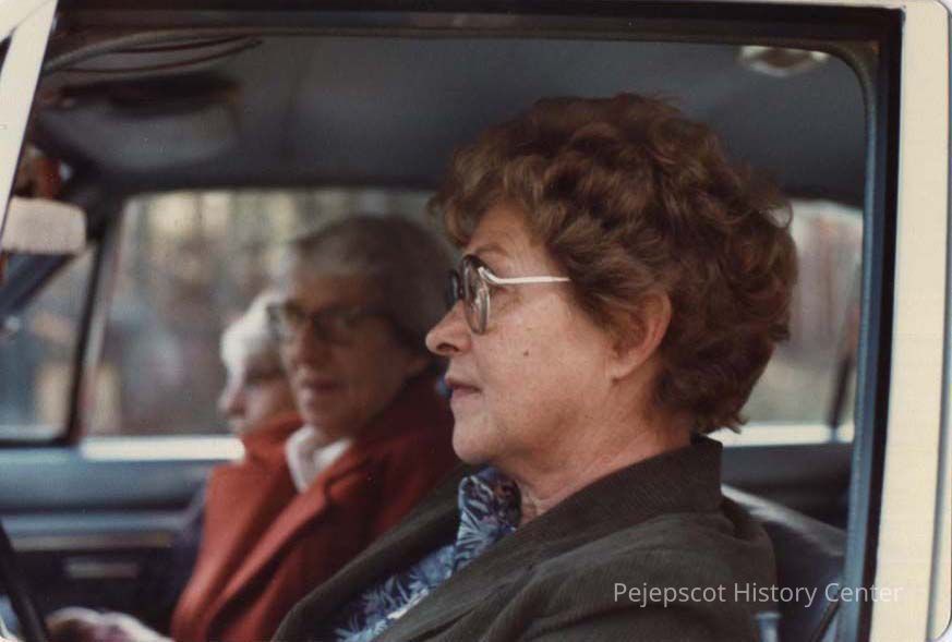 A color photograph of three ladies in a car. Marked on the back 11/1981.