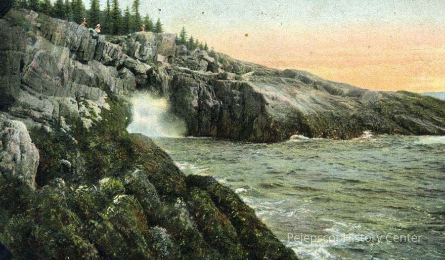 A colorized photograph of Thunder Hole, Bailey Island.