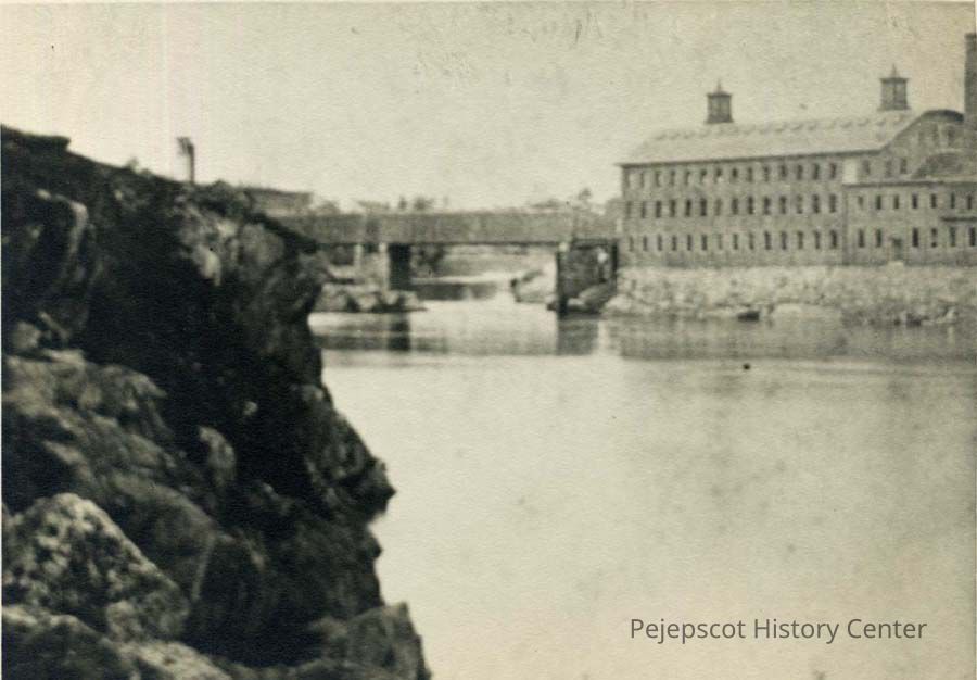 A B/W photograph looking upstream to the toll bridge to Topsham. Undated