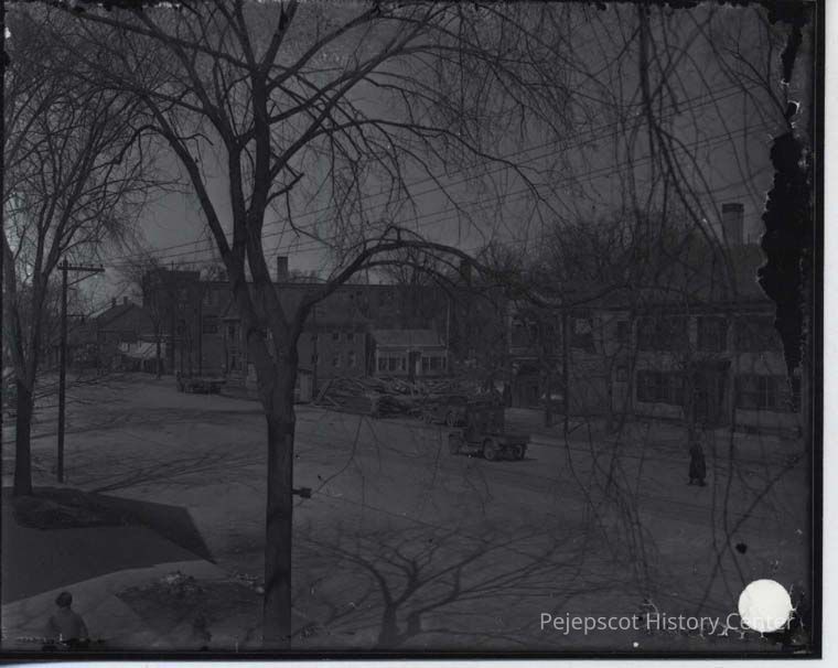 Photo of the Tondreau Block (87-91 Maine Street, Brunswick, Maine) under construction in 1926. It replaced the Odd Fellows Block, which was destroyed by fire in January of that year.