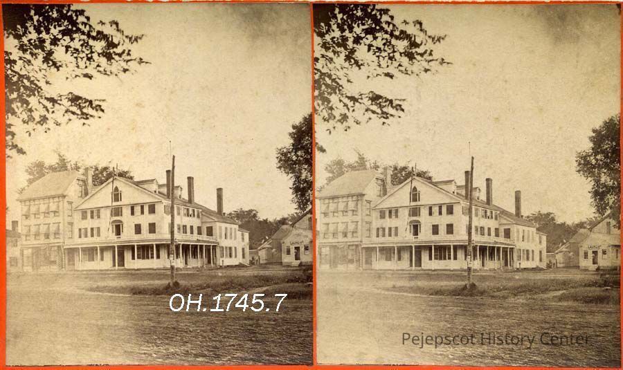 A stereo view photo of the Tontine Hotel, Maine St., Brunswick, ME. Not dated.
