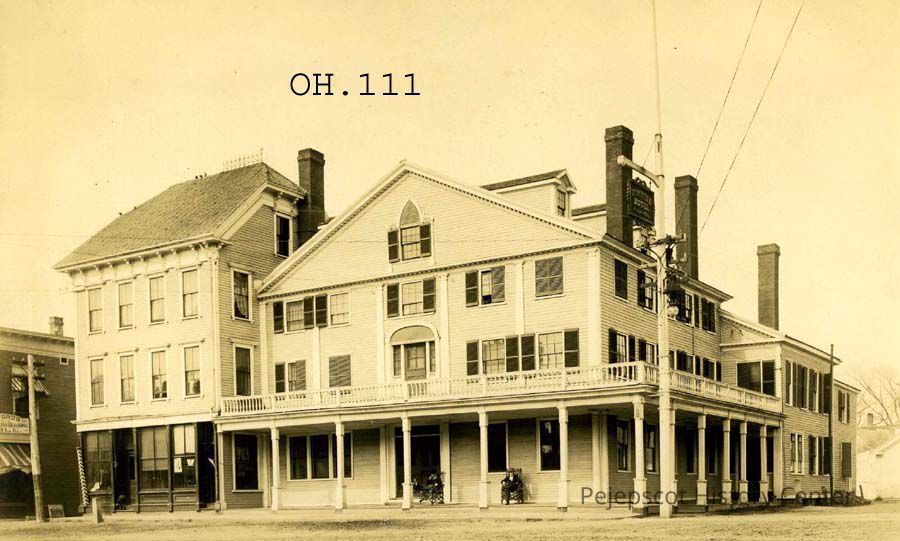 A B/W photograph of the Tontine Hotel, Maine Street, Brunswick, Maine. Dated ca. 1900.