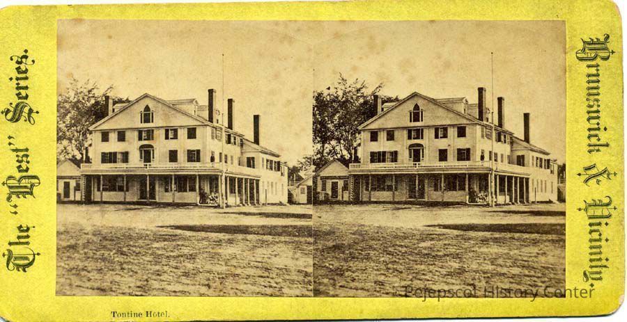 Stereopticon slides, Stereographs, B. G. Dennison, Tontine Hotel, Streets - Maine, Advertisements - Brunswick, Businesses - Brunswick, Hotel Tontine