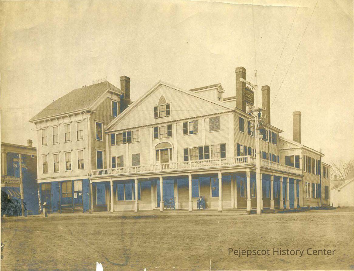 A black and white photo of the Tontine Hotel, Maine Street, Brunswick, Maine. No date.