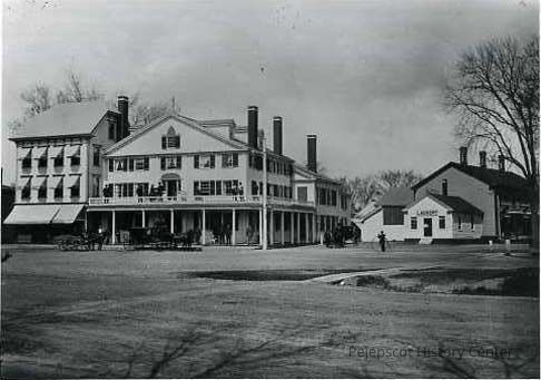 A B/W photograph of the Tontine Hotel, Maine Street, Brunswick, Maine in the early 1900s. Undated