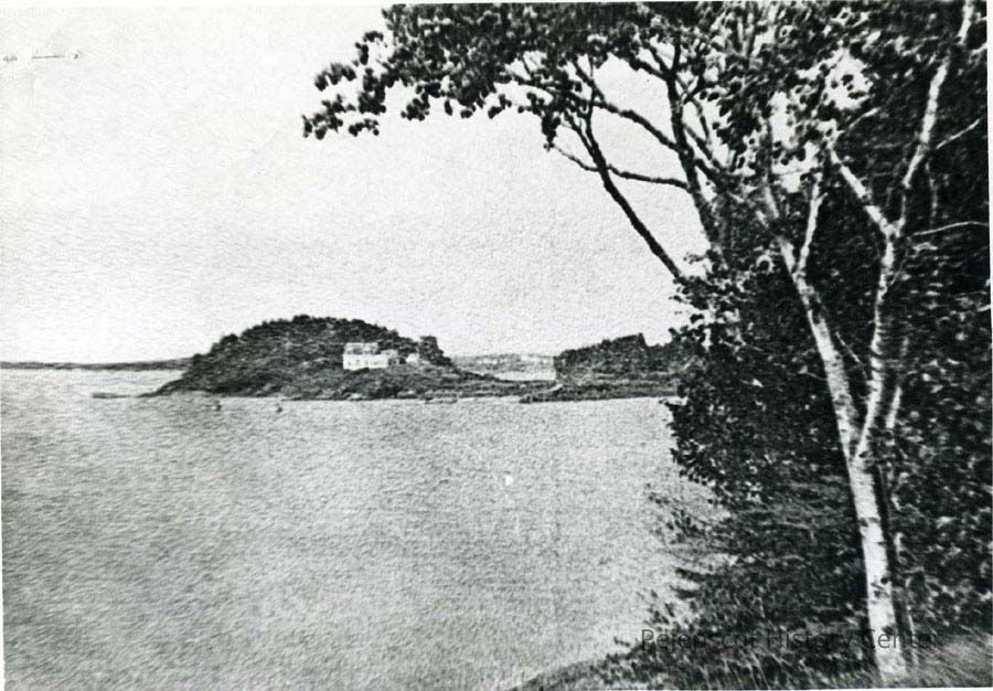 A B/W photographic view of the Toothaker House on Haskell Island.