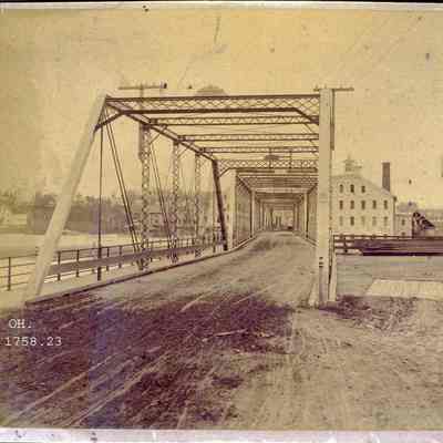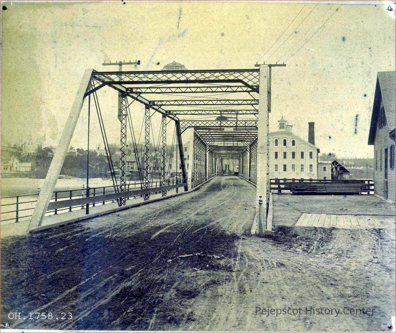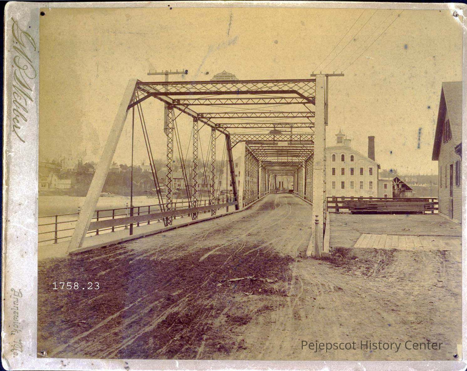 A B/W photograph of the Topsham-Brunswick Bridge. Brunswick looking towards Topsham, ME. Not dated.