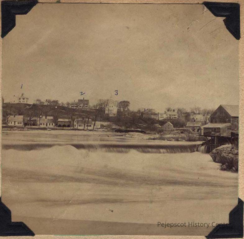 Topsham Falls photographed from the bridge -- showing Summer Street, Topsham.