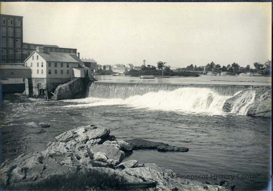 A B/W photograph of Topsham Falls. Undated
