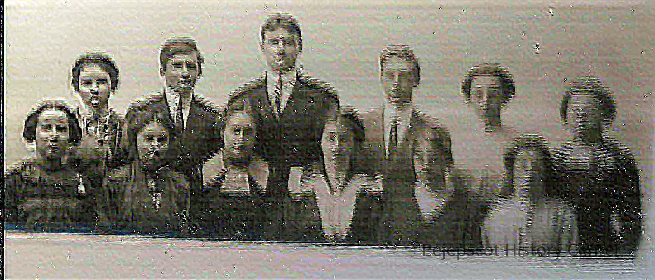 A B/W photograph of a group of people. Believe this is a group picture of the Topsham High School Class of 1911. UndatedLexicon