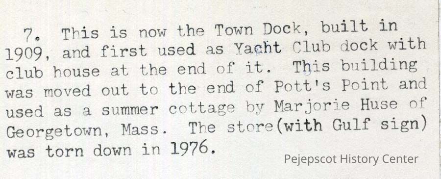 A color print copy of the Town Dock as it looked when the postcard was published. Was built in 1909. Undated