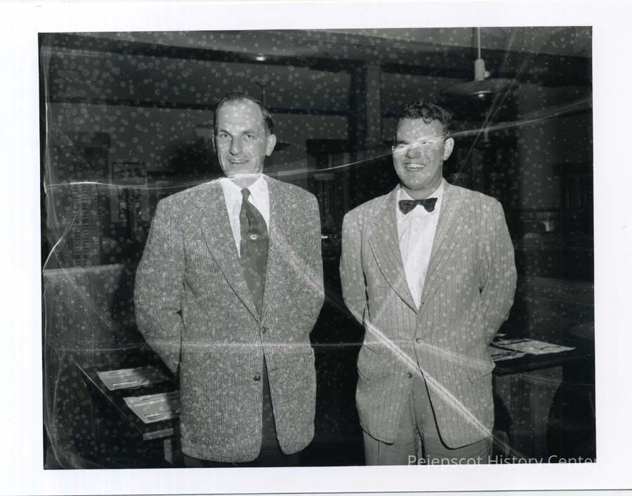 B/W photograph of town manager, Merle Goff and an intern, King.