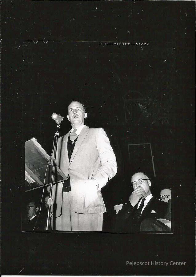 A B/W photograph of Town Manager Merle Goff at the dedication ceremony of the Brunswick street lights. 06/10/1955Lexicon