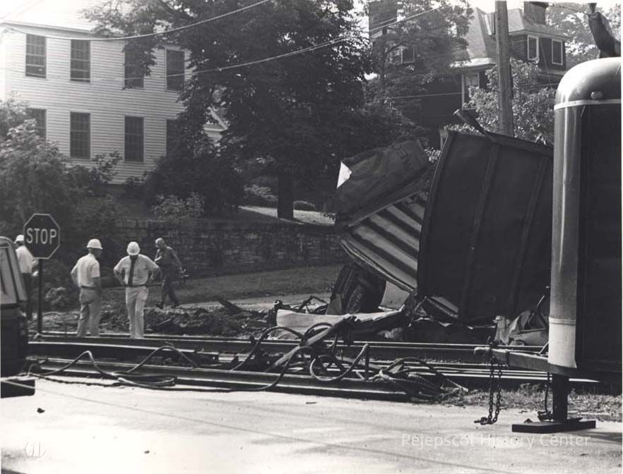A B/W photograph of some train wreckage along Fitch Place. Undated