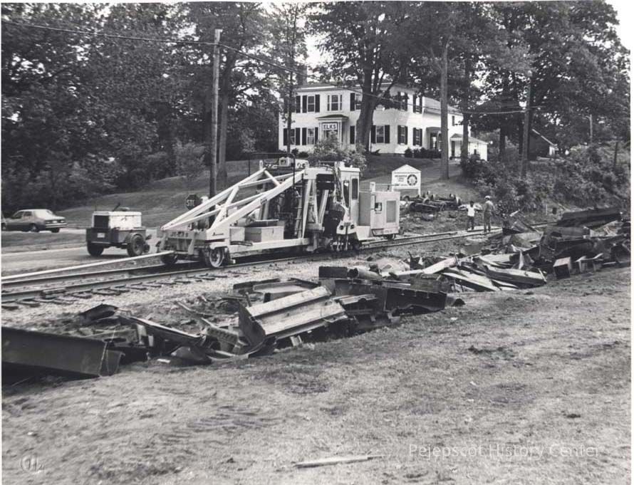 A B/W photograph of debris from the train wreck near Park Row. Undated