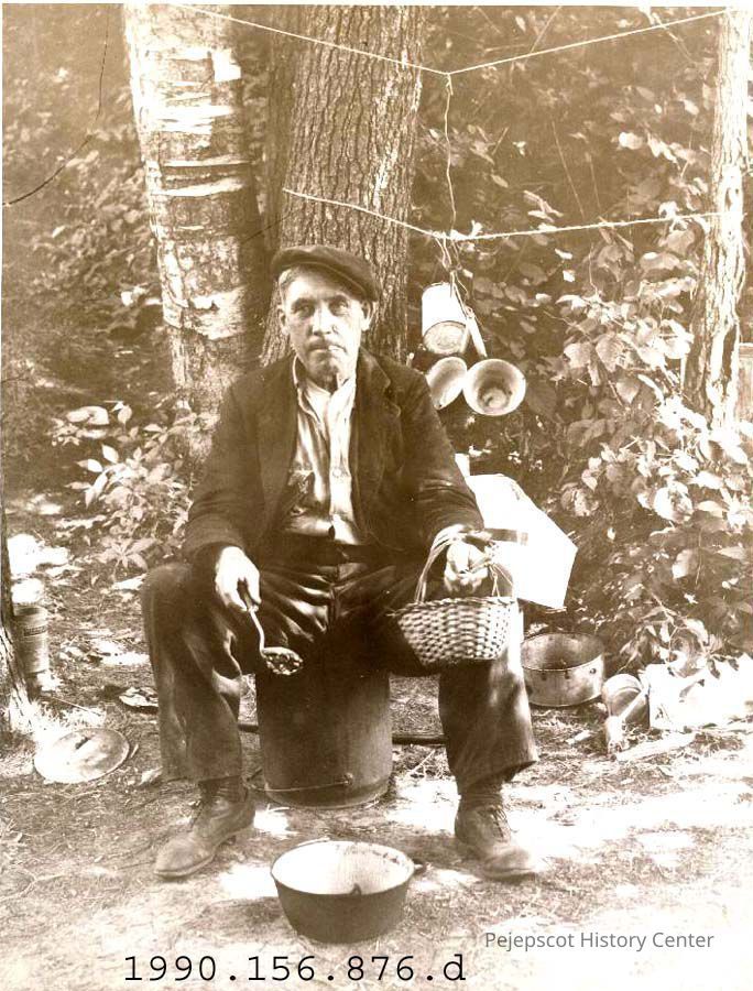 A B/W photograph of the "Hobo Den." A transient man (once called Hobos) in Topsham, Maine. This man's exact identity is unknown. Undated