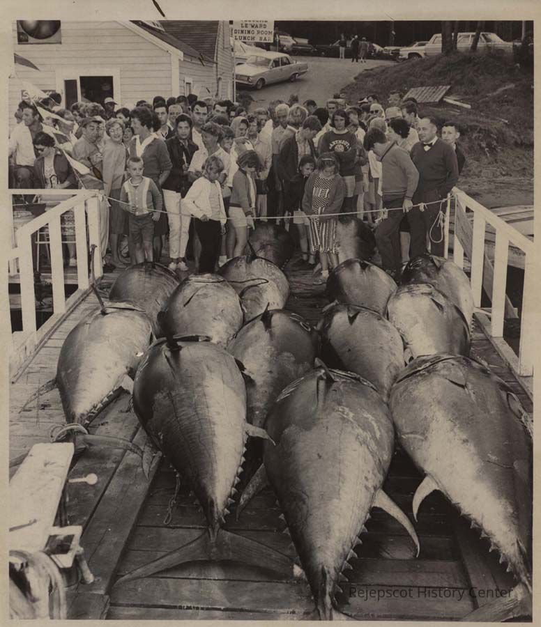 Photo of Tuna Fish Tournament on Bailey Island wharf, Harpswell, Maine.