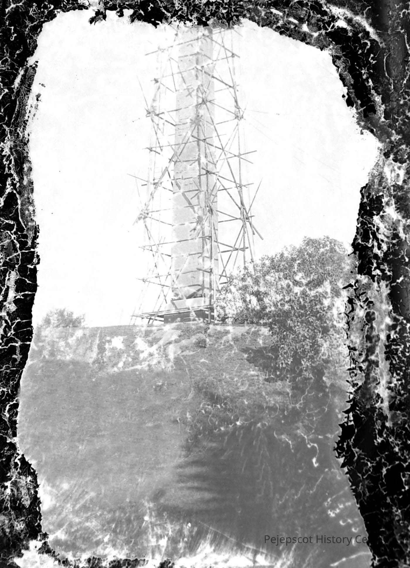 A glass plate negative with a photograph of a TV tower. While the negative & photo are not the exact same, they are of the same tower. "CD-R "Glass Negs #2" #52 Undated.