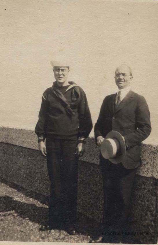 A B/W photograph of two men, one is wearing a Navy uniform. Undated