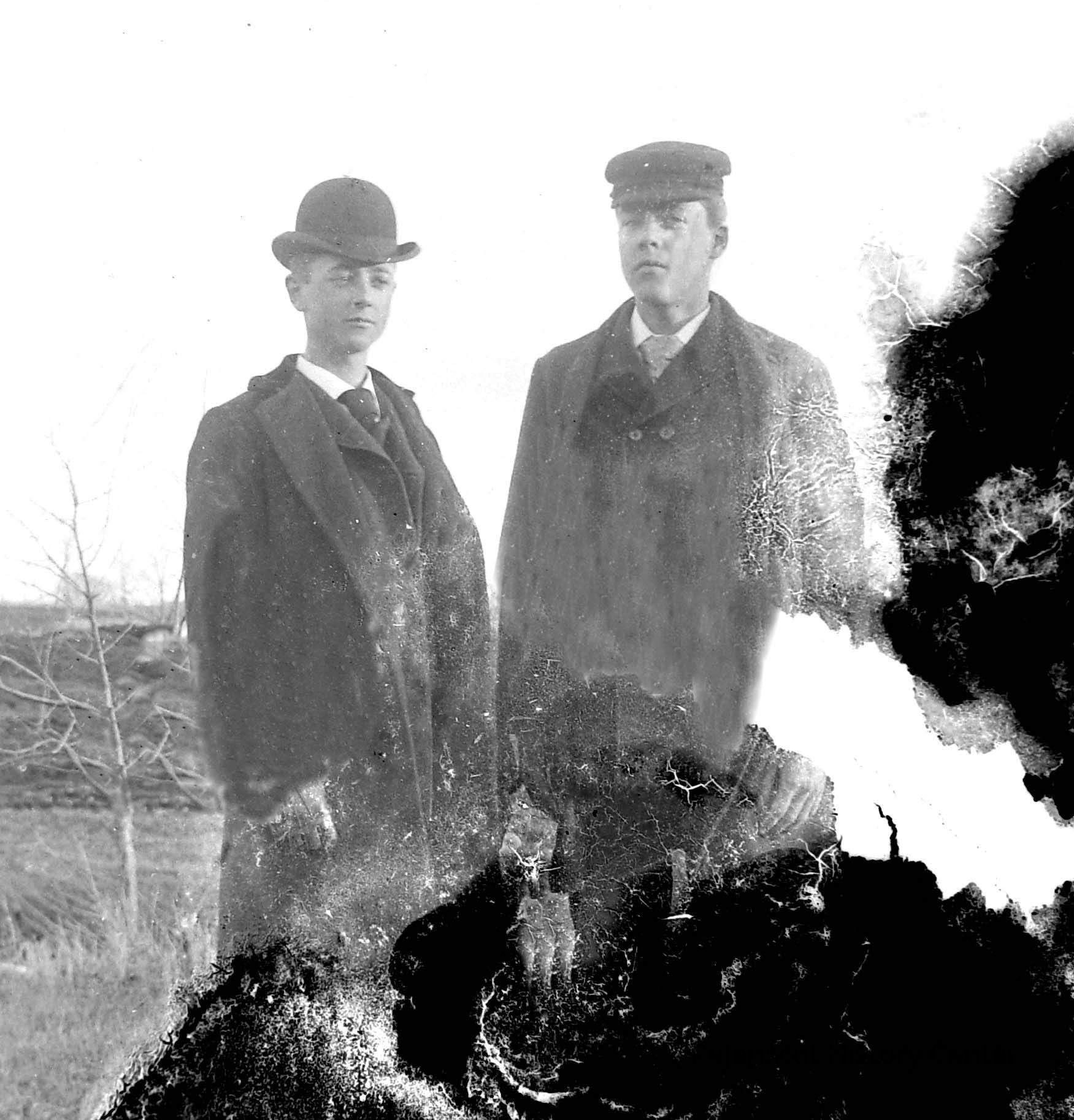 A glass plate negative with a photograph of two unknown men. "CD-R "Glass Negatives #2" #57 Undated.