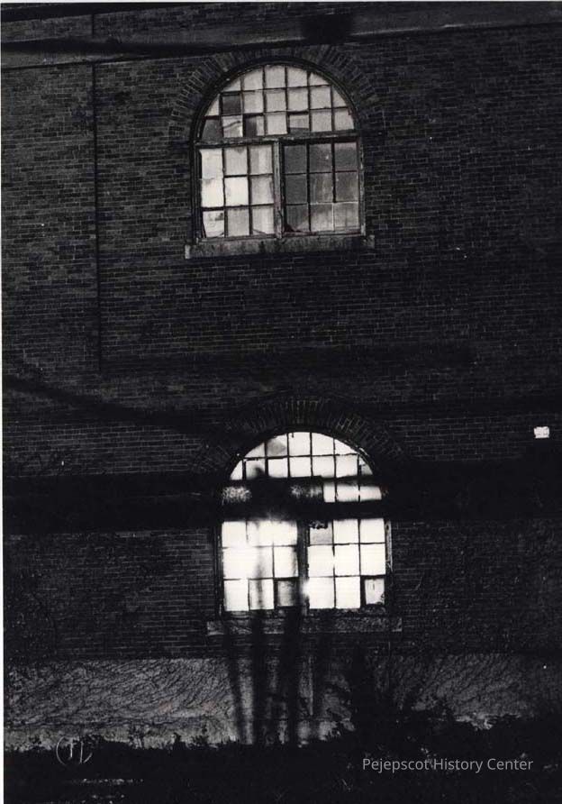 A B/W photograph of two windows at the Cabot Mill. Undated