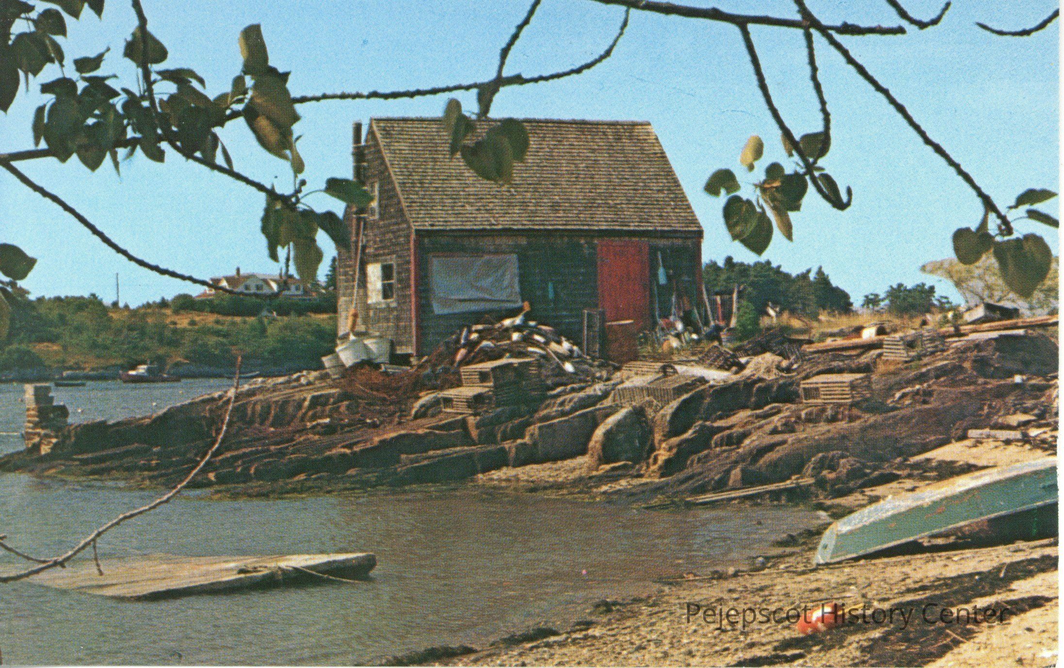 Color photo postcard of a typical fishing shack along the Maine coast.Collection