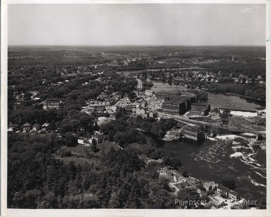 Aerial view of the intersection of U.S. 1 and Maine Street, Brunswick, Maine, prior to construction of the by-pass.