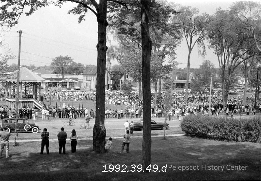 The public lines the Mall in Brunswick, Maine during the U.S. Bicentennial celebration, July 4, 1976.