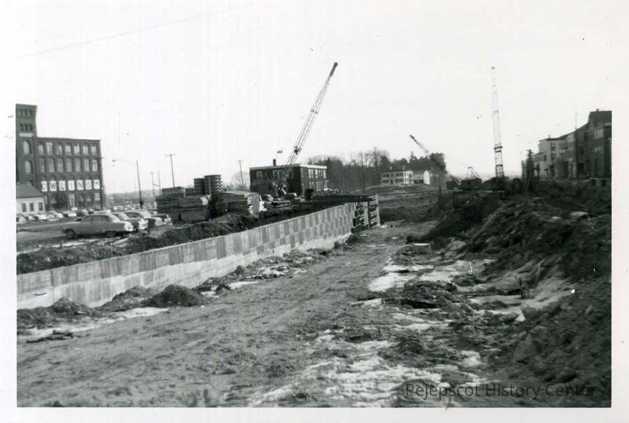 B/W photo of the Route 1 bypass underpass along Mill Street - looking East.