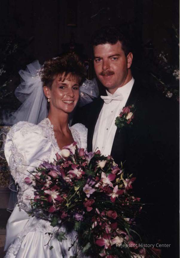 An undated color photo of an unidentified bride and Kyle M. O'Brien.