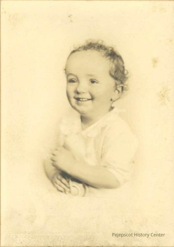 A photo of an unidentified child glued into a paper trifold.