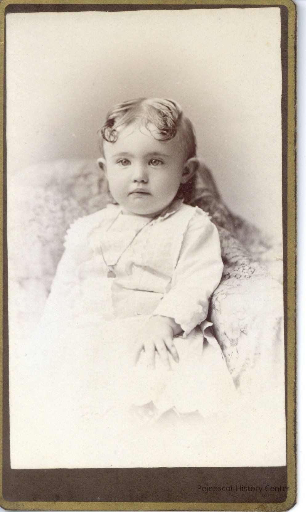 Sitting portrait of a young child wearing a necklace and long sleeve garment.