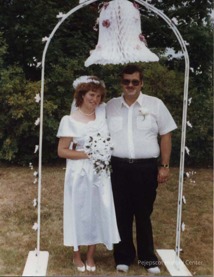 An undated color photograph of an unidentified wedding couple.