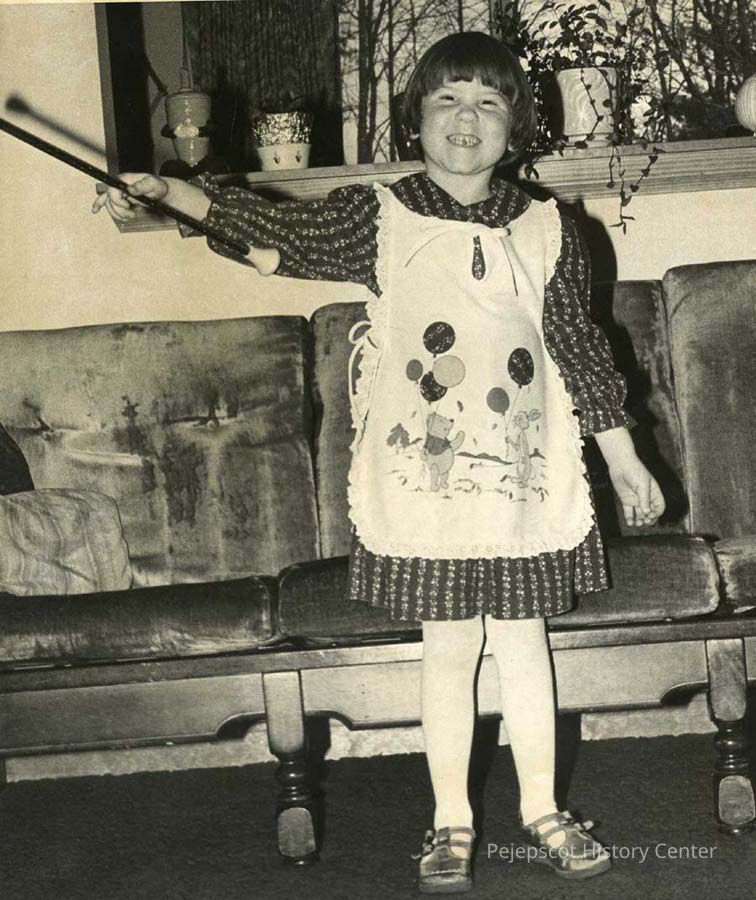 An undated black and white photo of an unidentified girl from Topsham, Maine, twirling a baton.