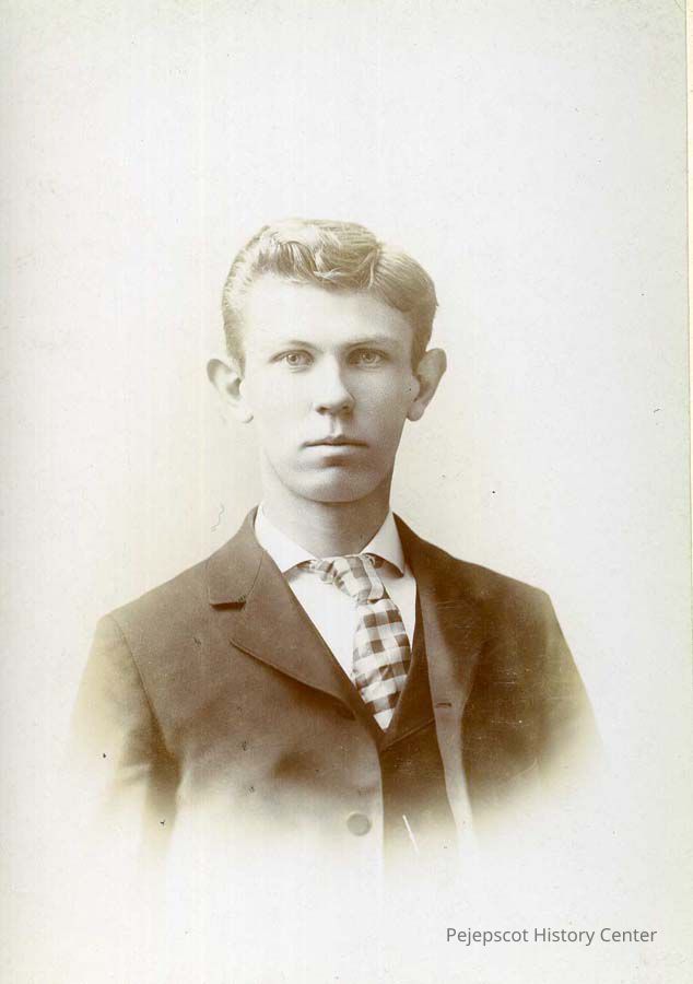 A sepia-toned photo of an unidentified man, Brunswick (Maine) High School class of 1895. Photo by G.B. Webber. Date ca. 1895.