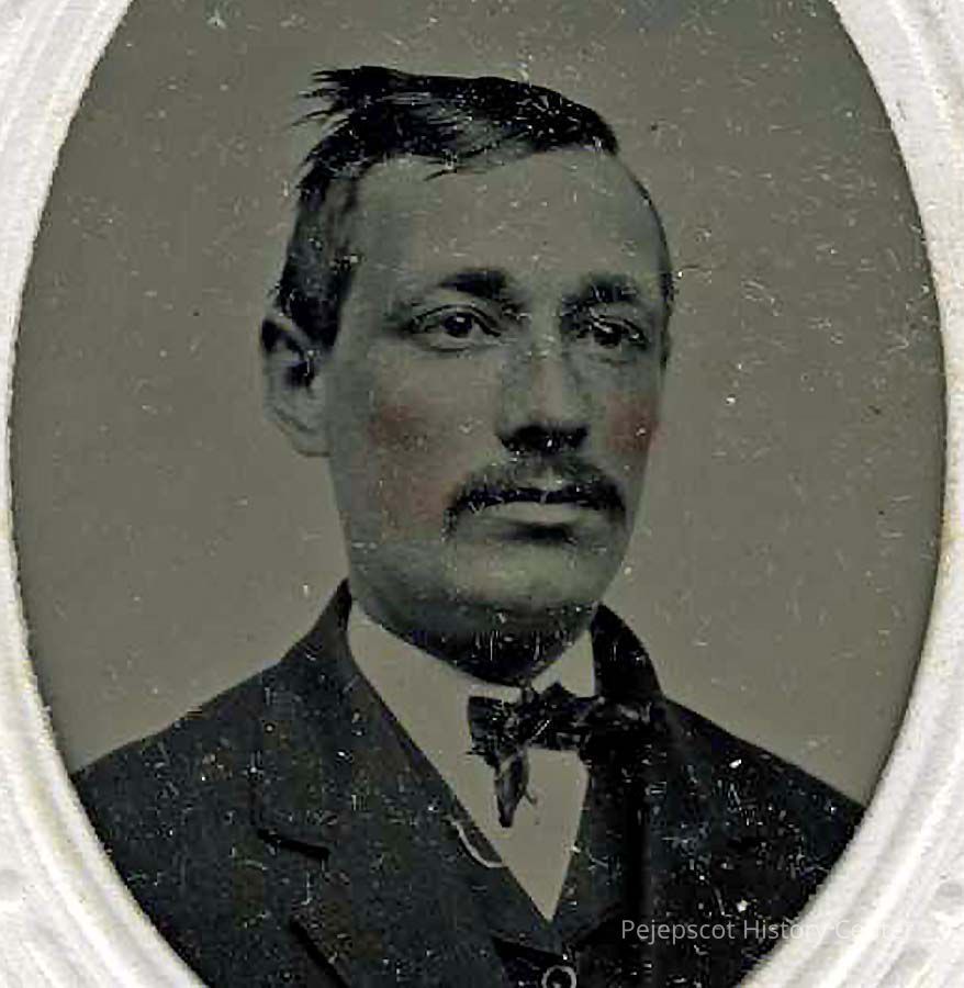 A B/W portrait photograph of an unknown man. Colored rouge appears to be added to the photograph around the mans cheeks. Undated.