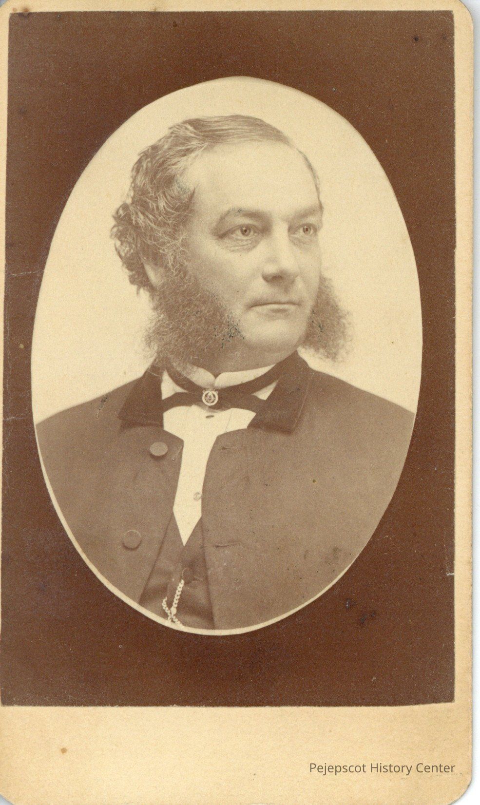 Portrait of a man with mutton chops wearing a jacket, shirt and bow tie.