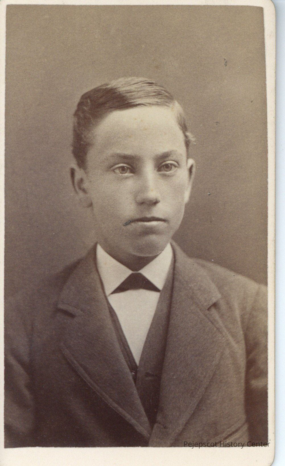 Portrait of a man wearing a suit coat, vest, collared shirt and cravat.