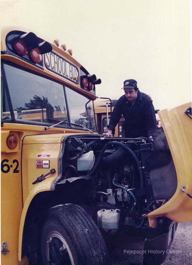 A color photo of a mechanic fixing a school bus in Topsham was printed in The Times Record in Brunswick, Maine, on 8/31/1988.