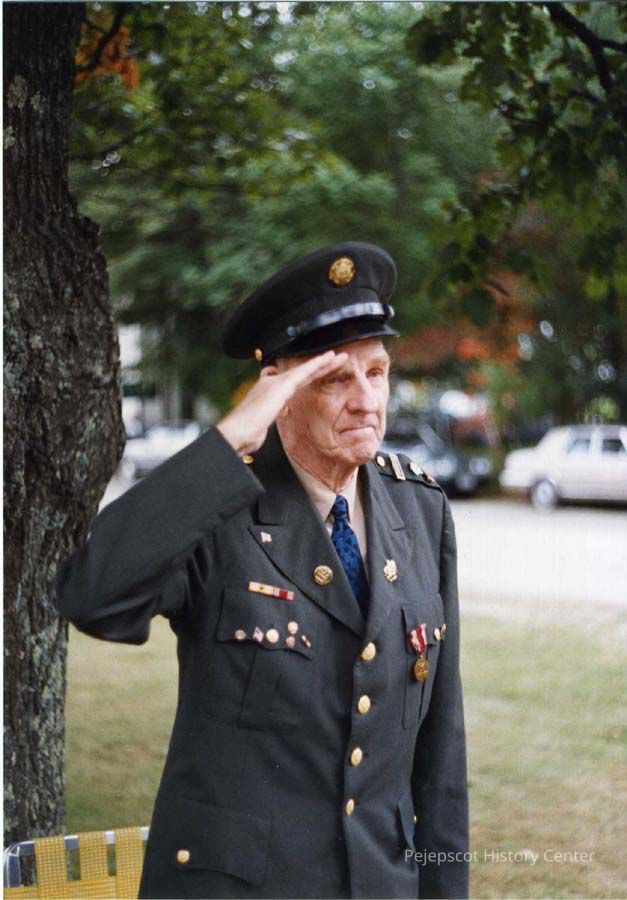 An undated color photo of an unidentified veteran saluting,Topsham, Maine.