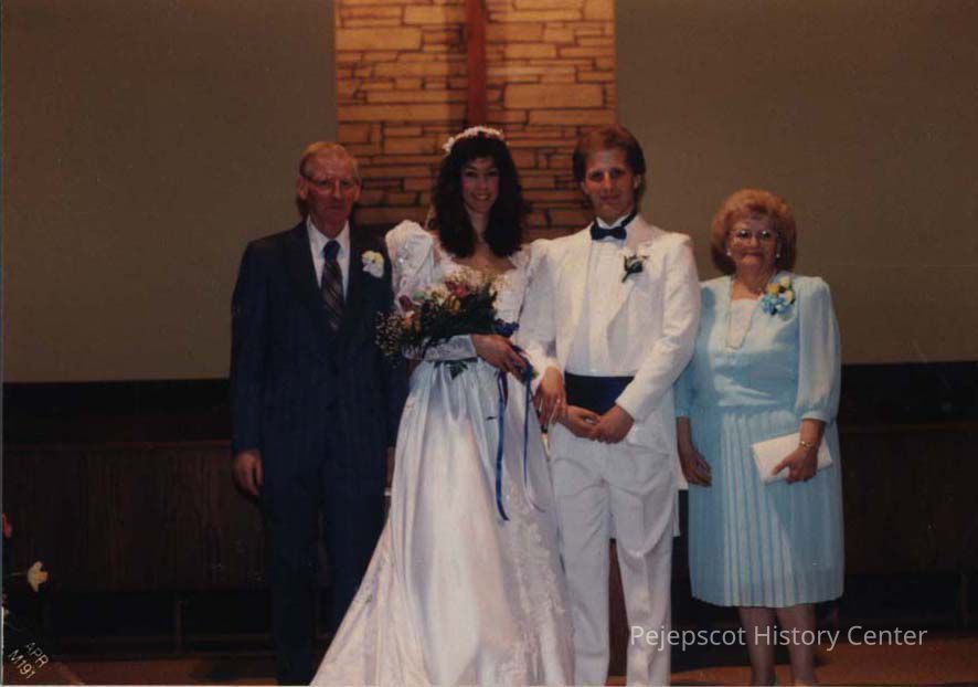 An undated color photo of an unidentified wedding party.