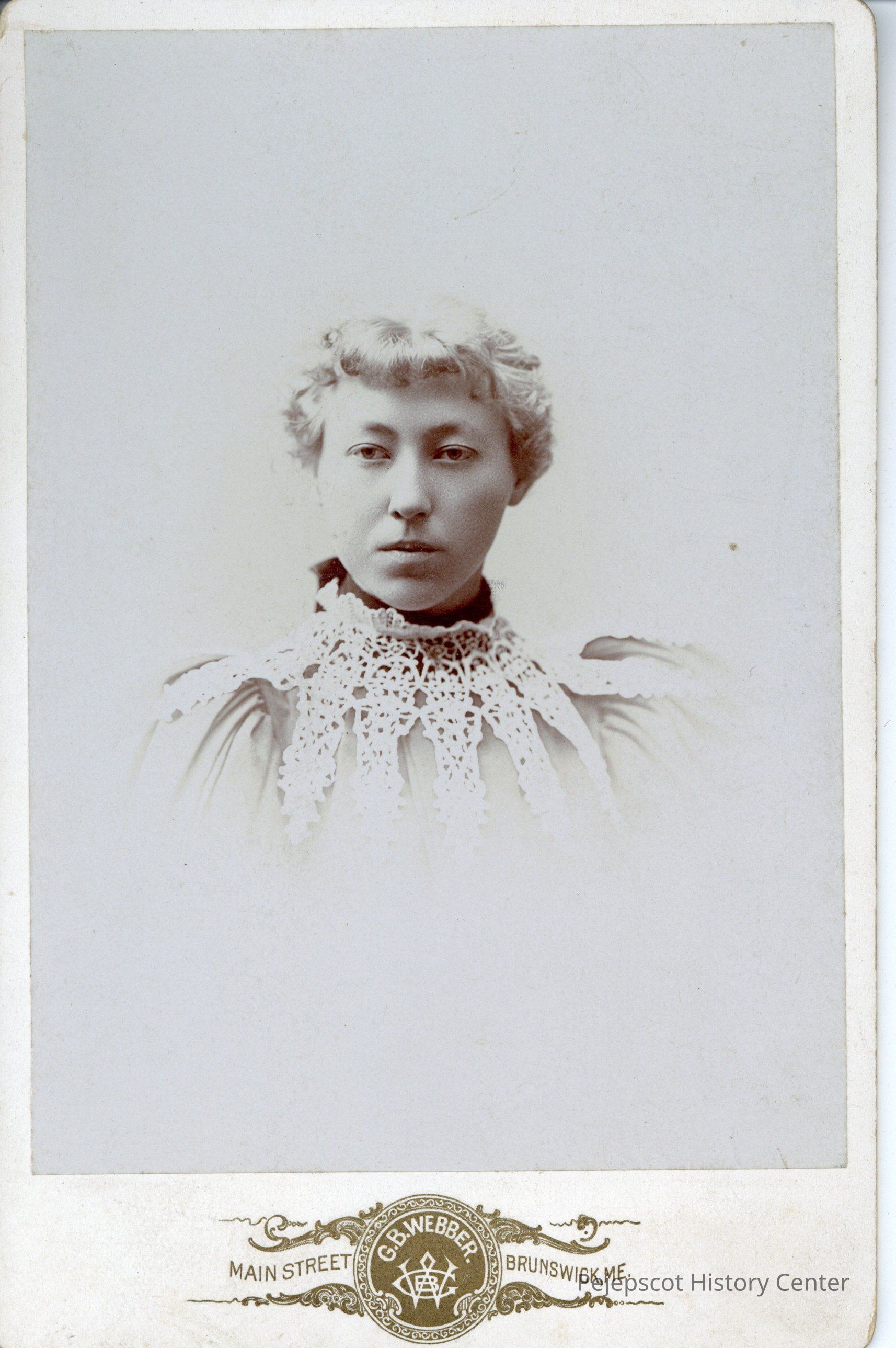 A photo of an unidentified woman attached to a paperboard card