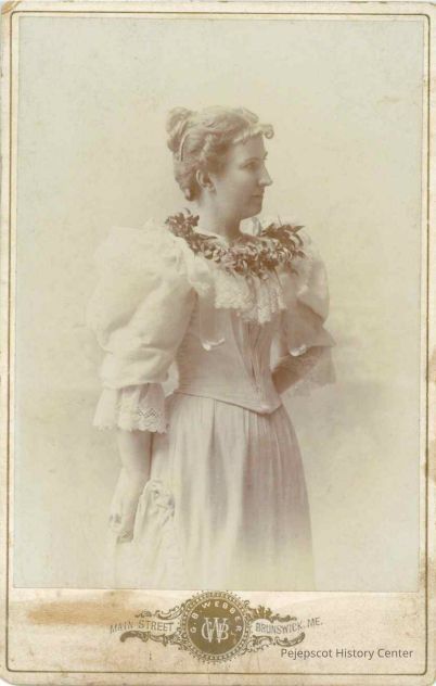 A photo of an unidentified woman attached to a paperboard card
