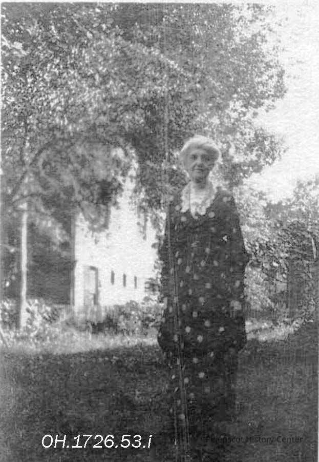 A B/W photograph of an elderly woman. Believe this is Kate Furbish. This is the same woman in the same dress as OH.1726.53.h. Photo not dated.