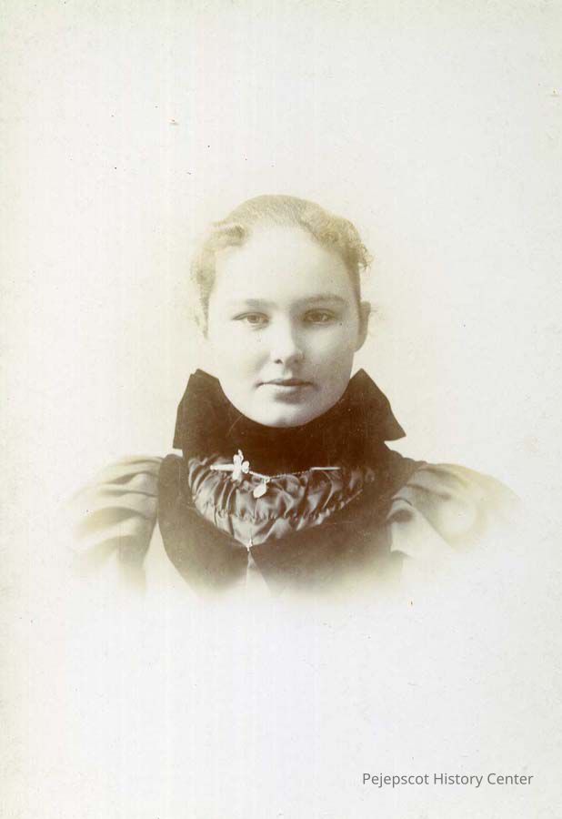 A sepia-toned photo of an unidentified woman, Brunswick High School class of 1895. Photo by G.B. Webber. Date ca. 1895.
