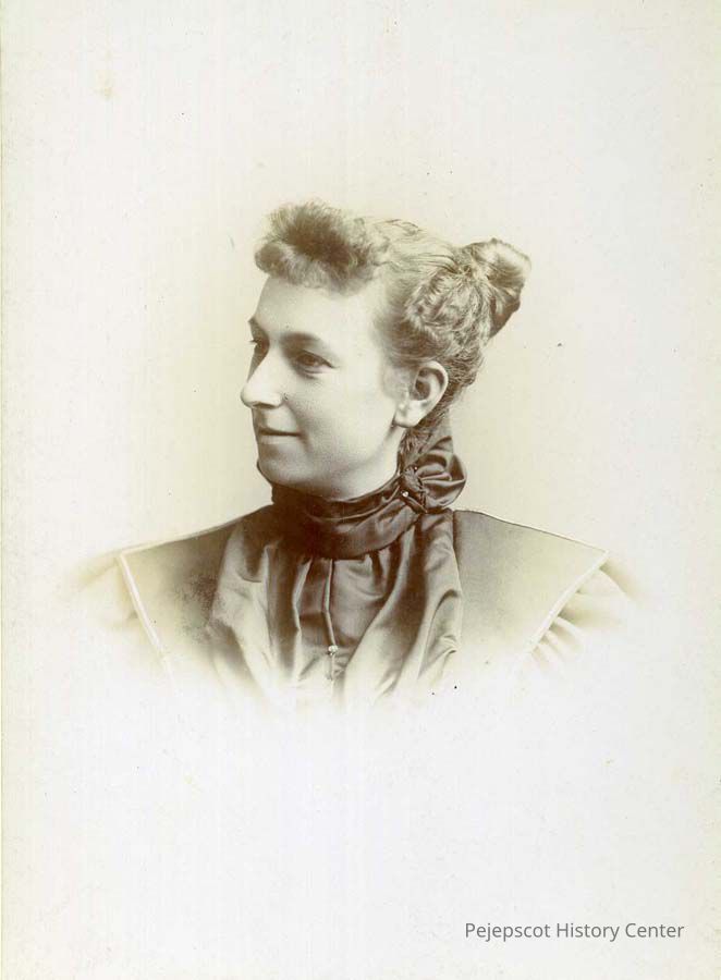 A sepia-toned photo of an unidentified woman, Brunswick High School class of 1895. Photo by G.B. Webber. Date ca. 1895.
