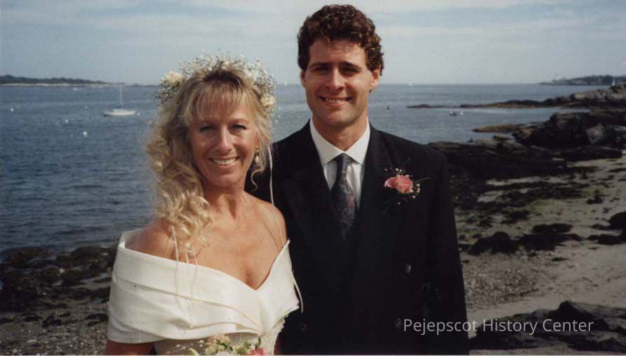 An undated color photograph of an unidentified bride and David Hill.