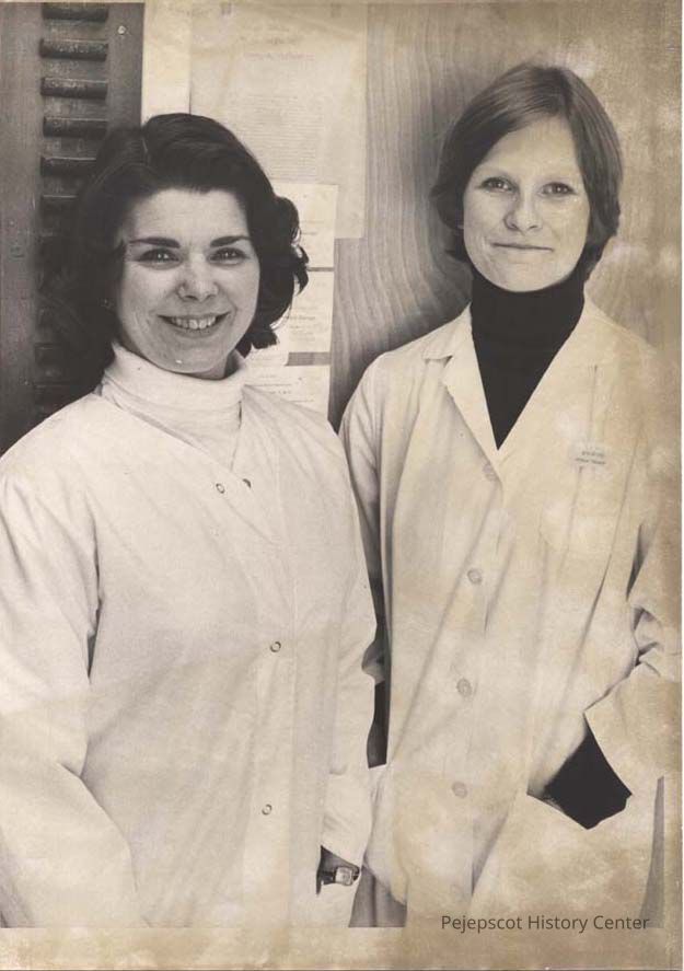 An undated black and white photograph of an unidentified woman, left, and Heather Higbee of Topsham, Maine.
