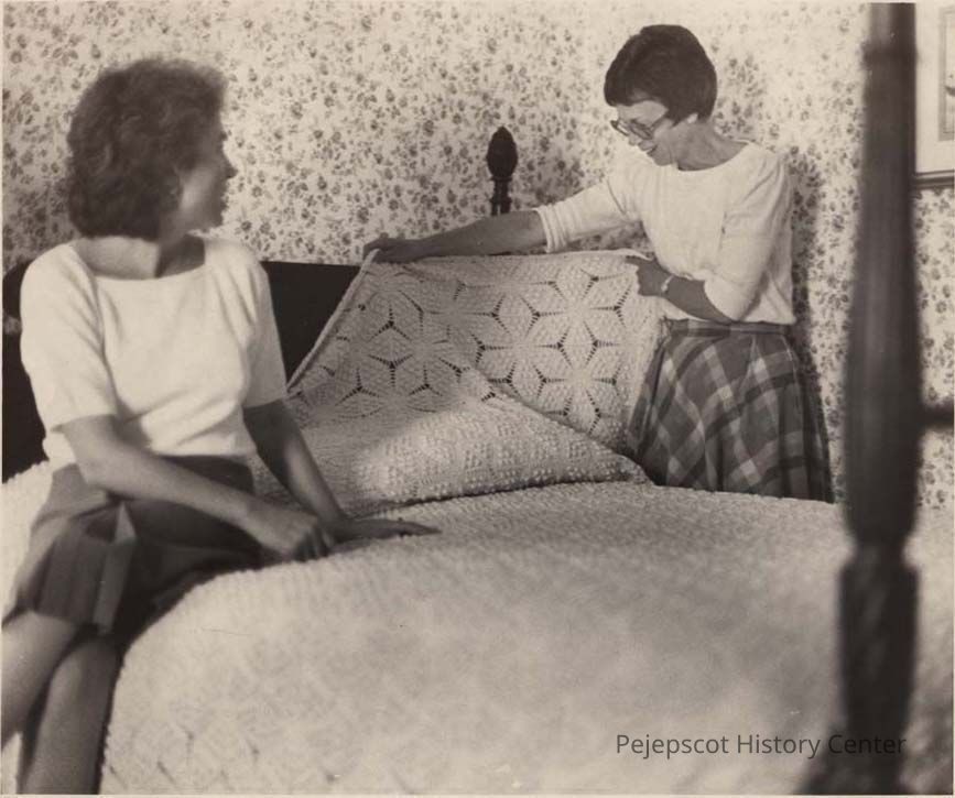 A black and white photo of two unidentified women looking at bedding was published in The Times Record in Brunswick, Maine, on 6/27/1984.