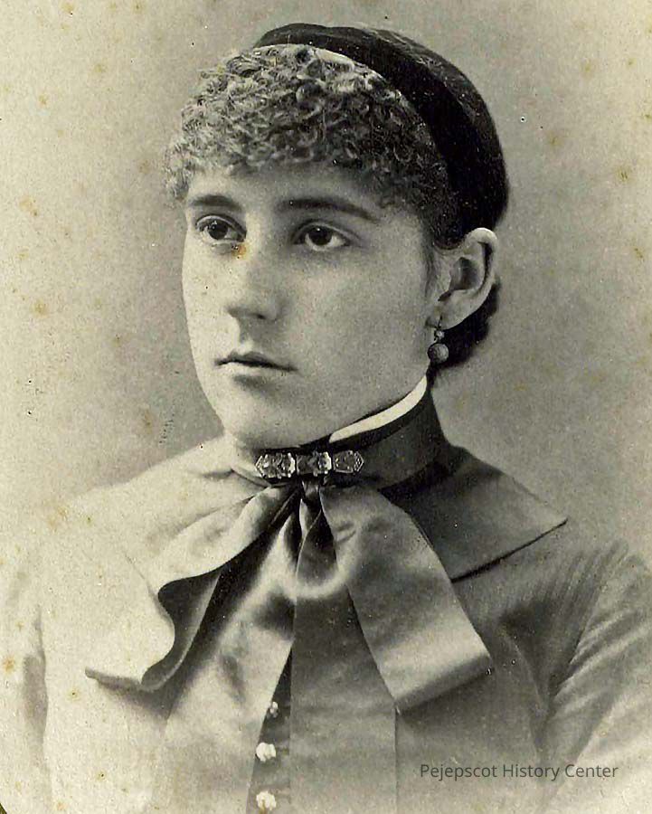 A B/W photograph of an unknown woman wearing a headband. No date.
